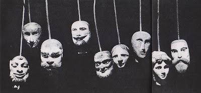 Publié par Denoël dans une belle collection comportant de jolis titres comme J'aime le music-hall, le strip tease, le cinéma, l'opéra, etc... ce livre a tout de la petite perle surréaliste. Les photos de Jean Mohr nous montrent toute l'inquiétante étrangeté de ces faces de bois qui défient le temps et dont l'expression nous laisse un goût de mystère au fond de la rétine.